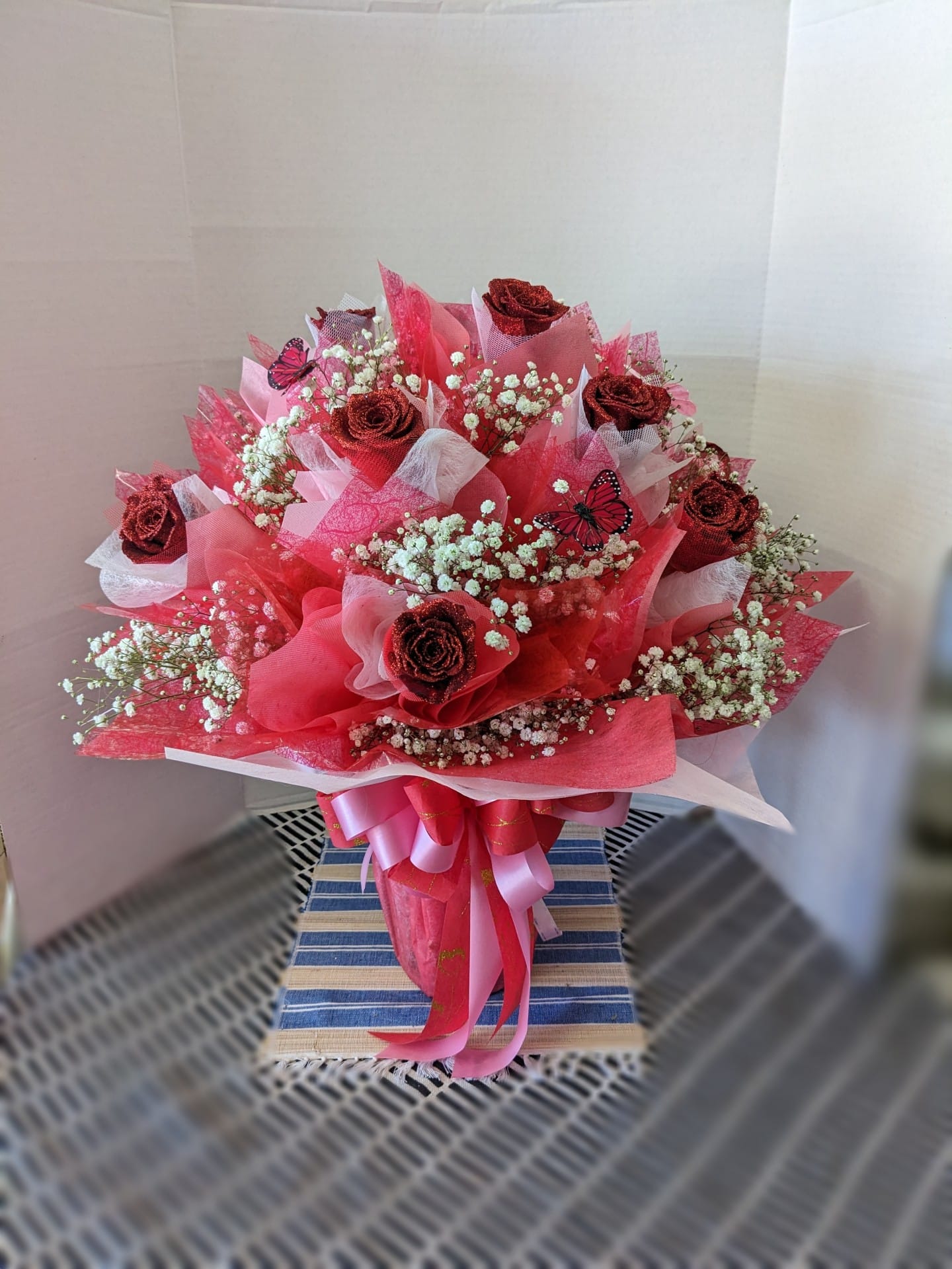 Hong Kong Style, 12 (one dozen) Roses with Shining glitter, Flowers in a vase.